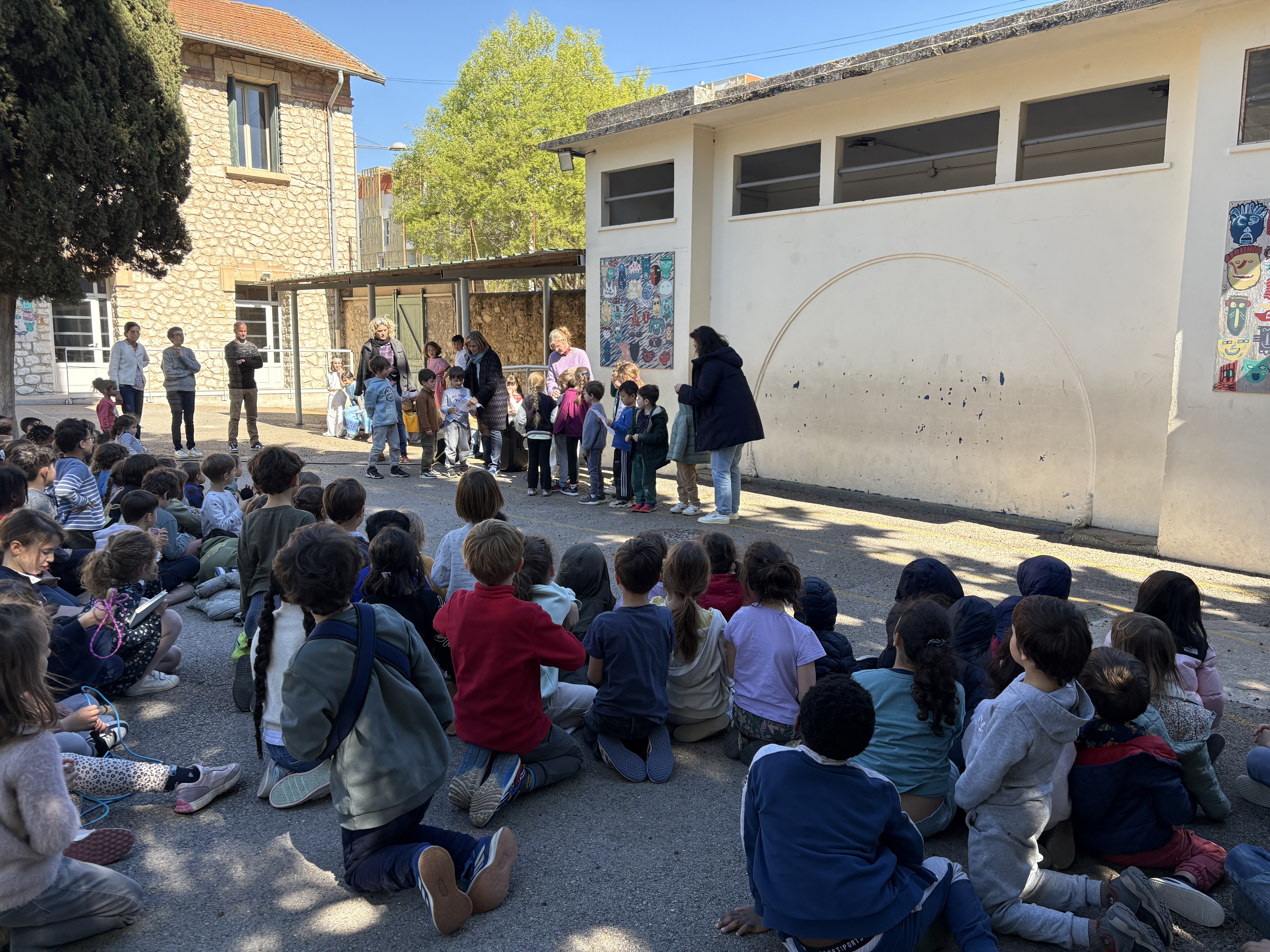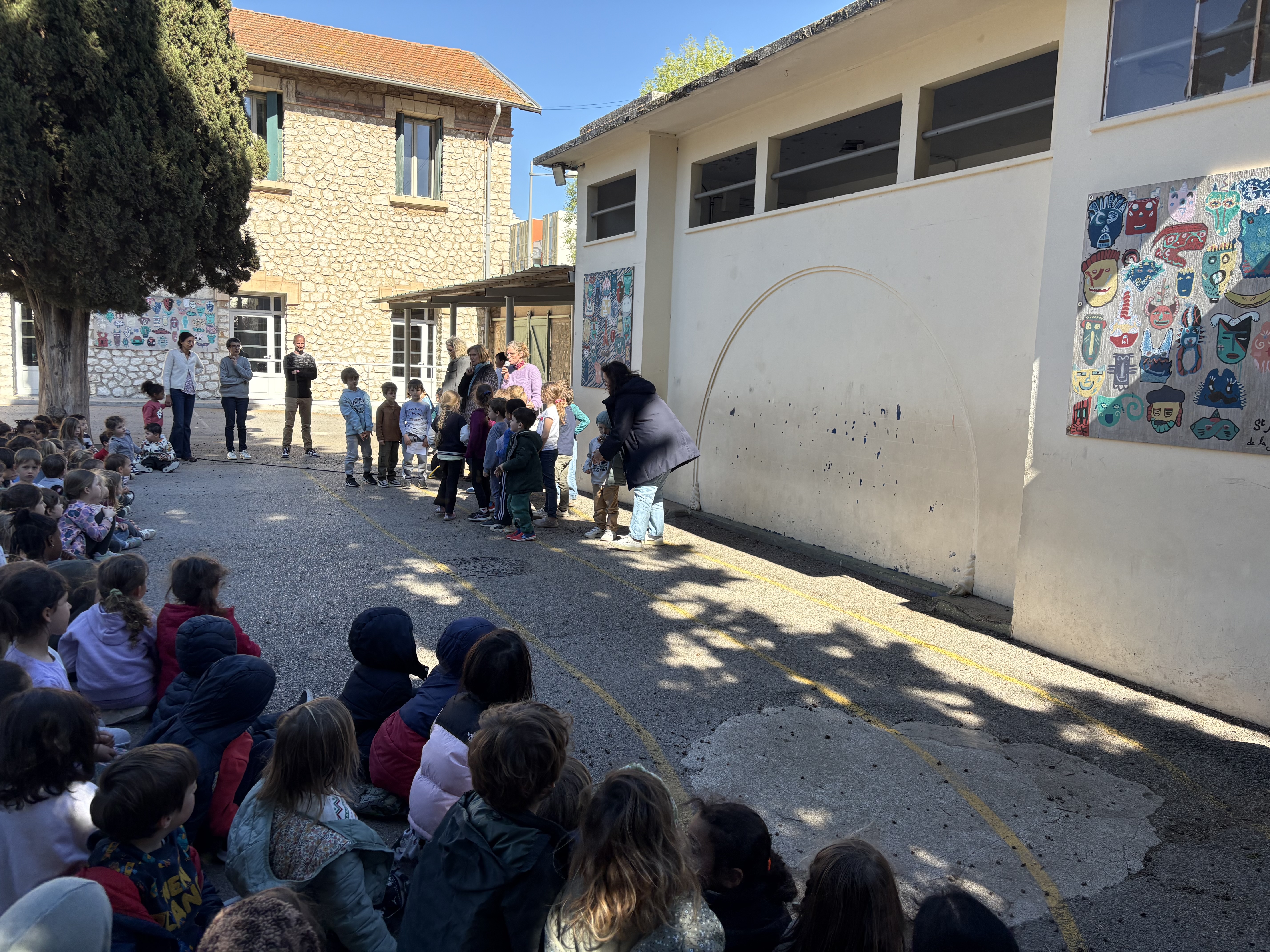 Un moment de célébration qui a réuni les maternelles, les CP, et les CE1 sur la cour de l’Ecole.