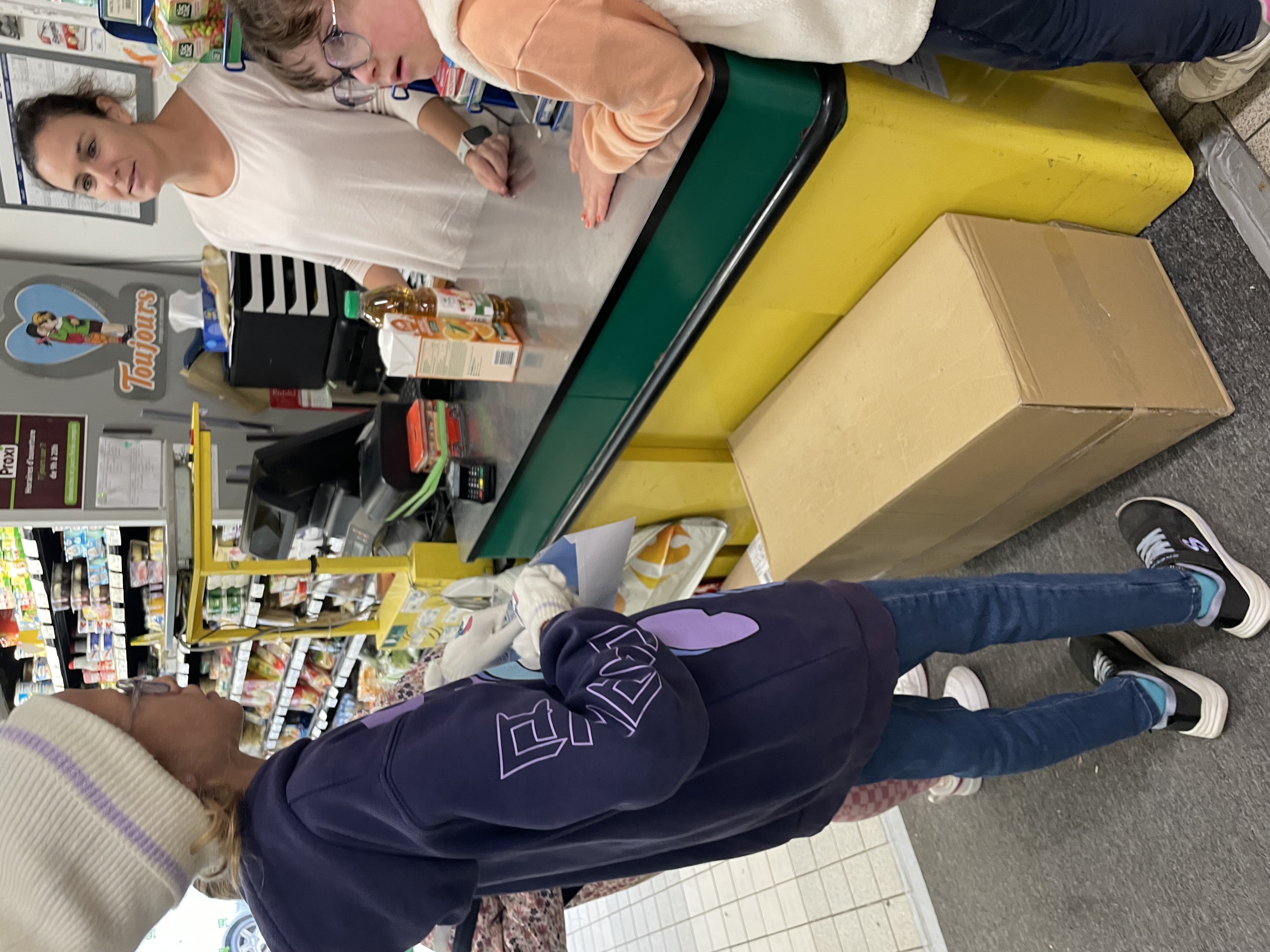 étions par groupe de 3 avec une liste de courses, un sac pour mettre nos achats